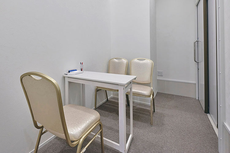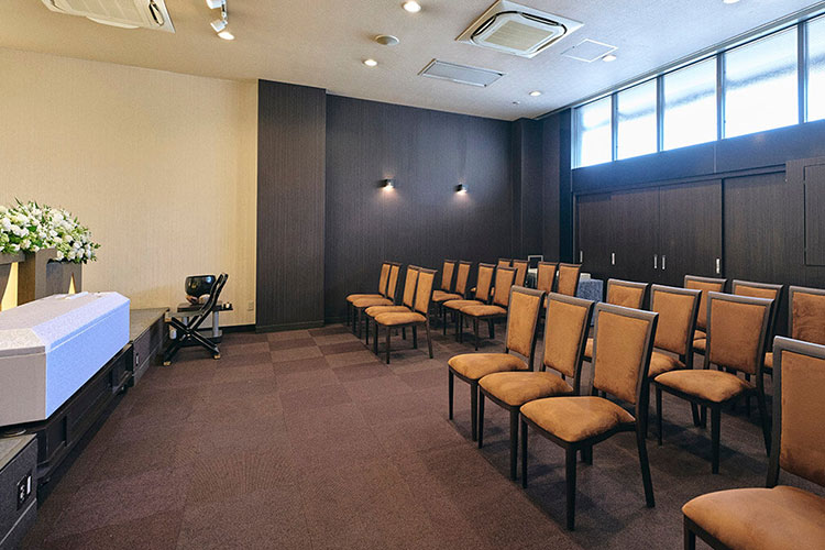 落ち着いた雰囲気で、心静かに故人様とのお別れをしていただける面会・打ち合わせ室(各13平米)をご用意しております。ご納棺、故人様との面会、メイク処置、湯灌処置、打ち合わせのスペースとしてご利用いただけます。