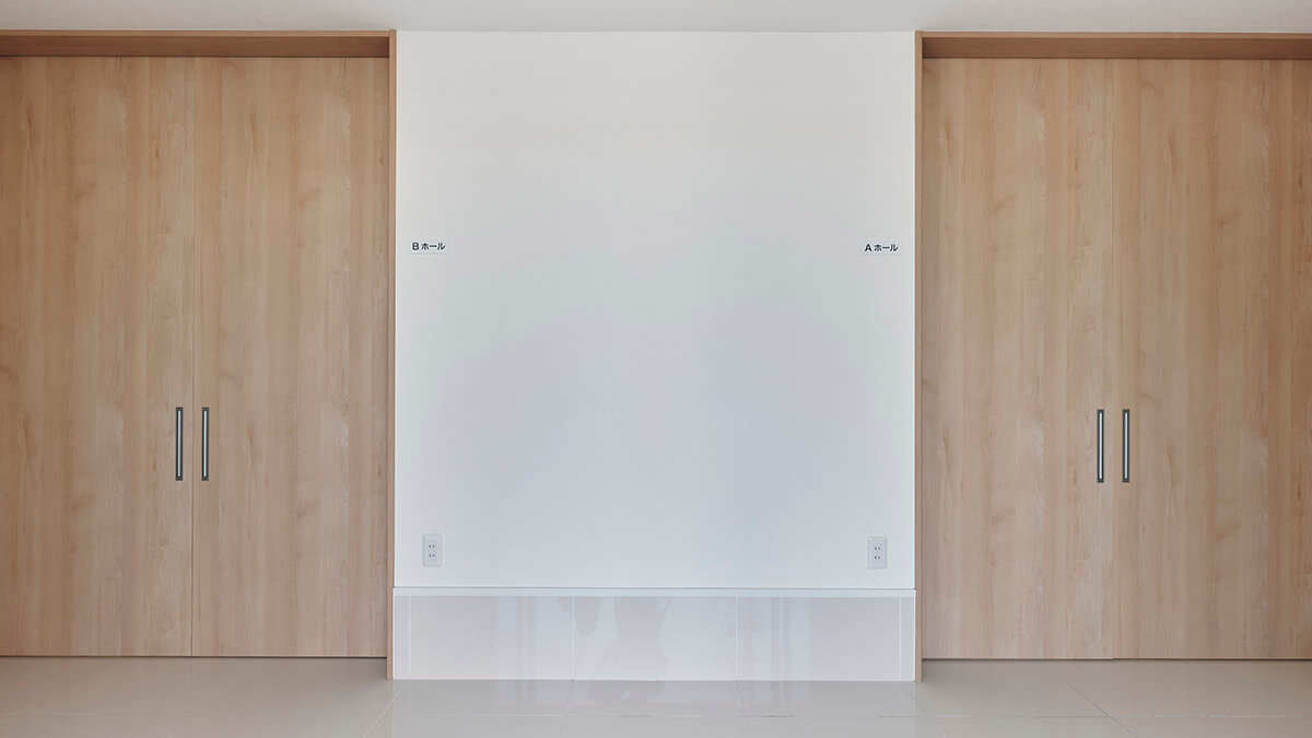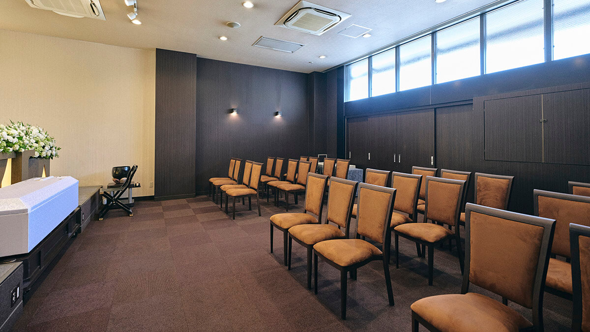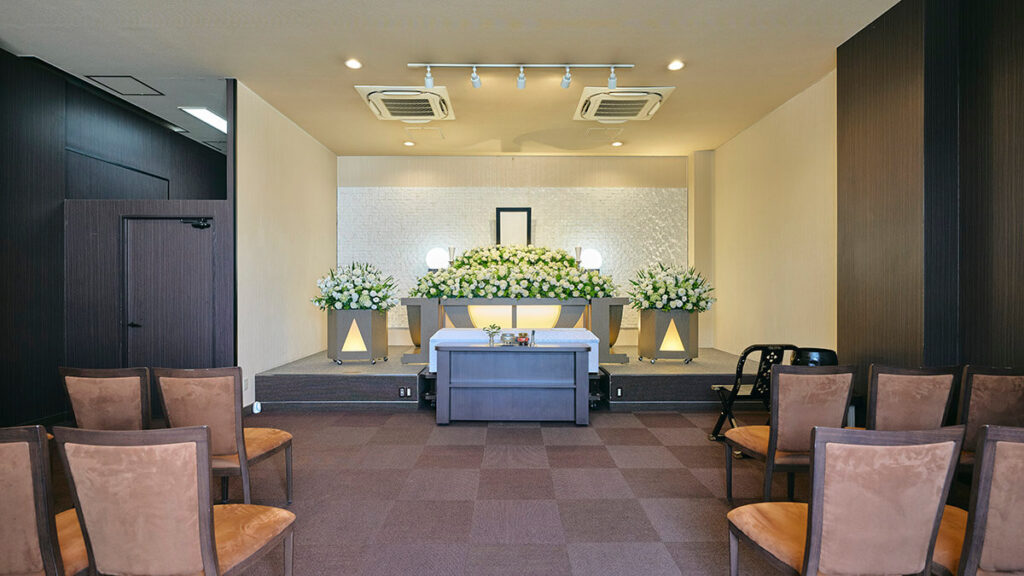 式場には、大人数にも対応できる大ホールと、家族だけでお見送りしたい方向けの小ホールを2室ご用意。参列者の人数やご家族のご希望にあわせて最適なホールをお選びいただけます。無駄なく、ちょうどいい規模感で、大切な人とのお別れができます。