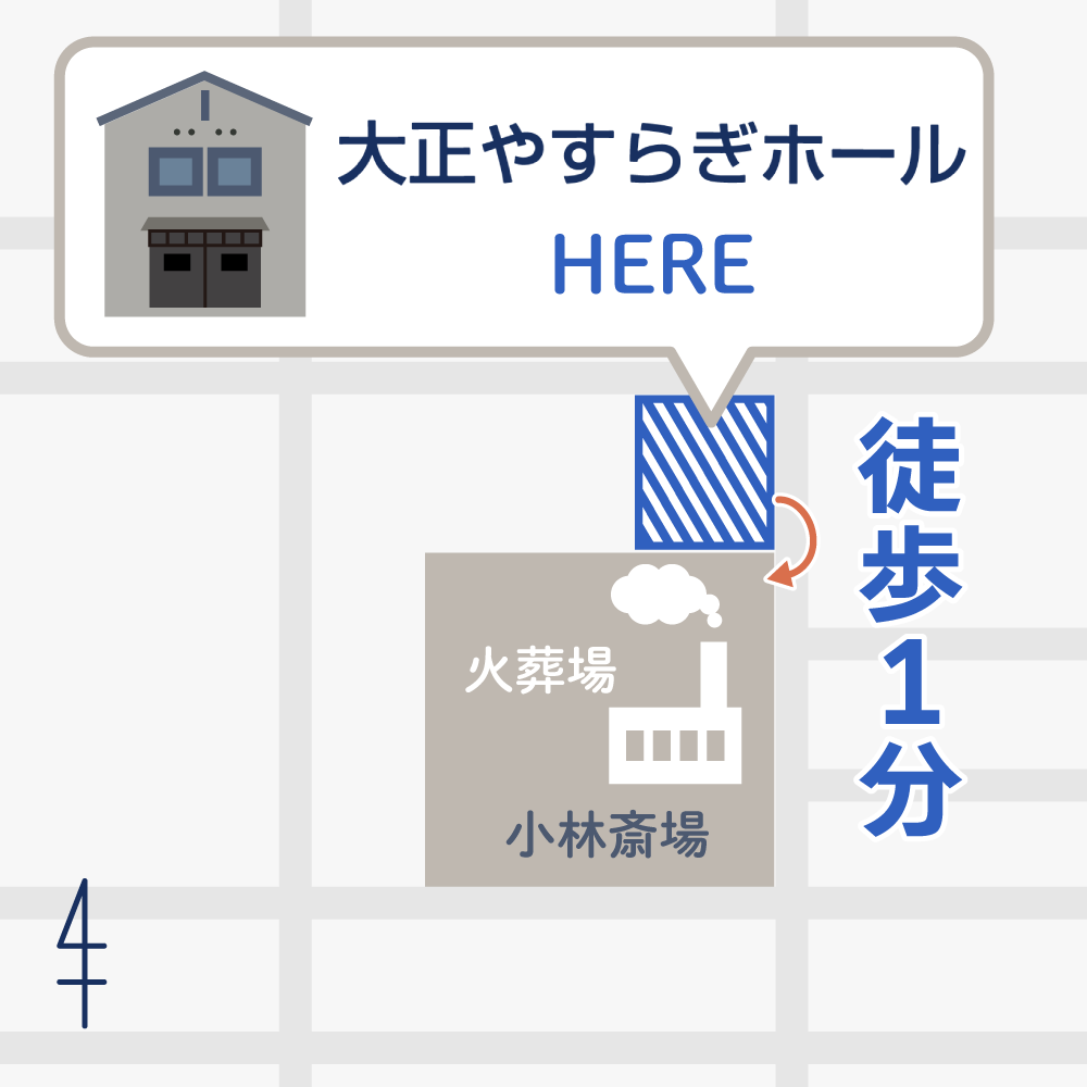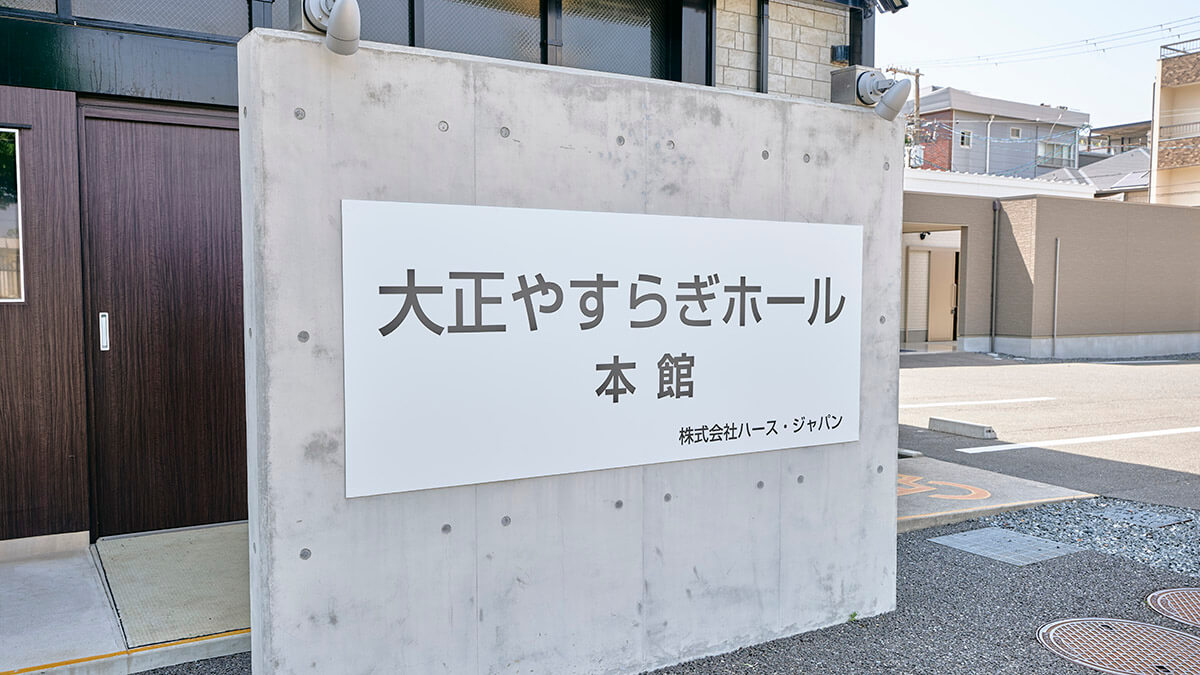 大正安らぎホールは大阪市立小林斎場に隣接する葬儀用レンタルホールです。