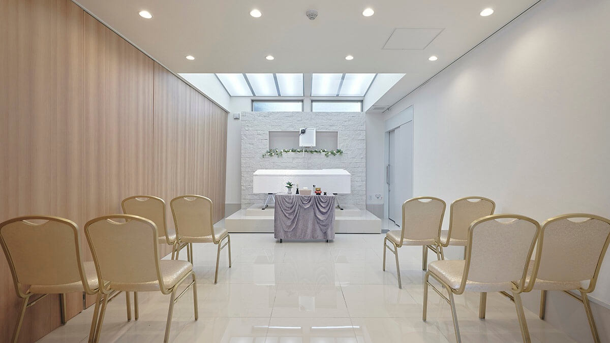 式場には、大人数にも対応できる大ホールと、家族だけでお見送りしたい方向けの小ホールを2室ご用意。参列者の人数やご家族のご希望にあわせて最適なホールをお選びいただけます。無駄なく、ちょうどいい規模感で、大切な人とのお別れができます。